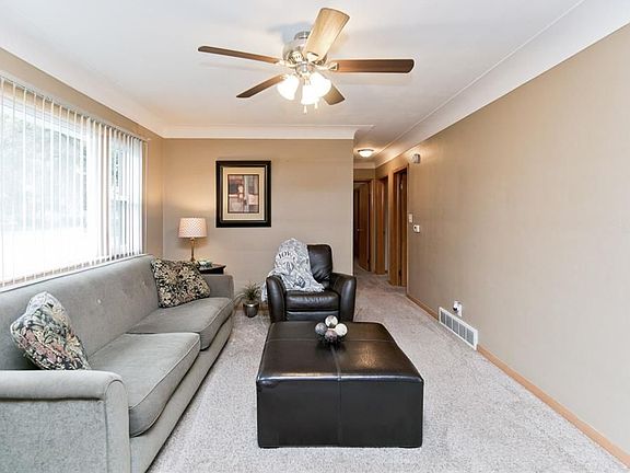 Great ranch home in amazing condition! The seller has taken great care of this home that features newer carpet, newer windows, new paint, updated bath, remodeled kitchen with stainless steel appliances and new counters. The basement is completely dry with a large rec room, a 4th non conforming bedroom, another updated full bath and plenty of storage. The flat back yard has a privacy fence and spacious deck to entertain on. Attached one stall garage with additional parking pad. The roof, furnace, A/C are all 4 years old and all appliances, including washer/dryer are staying! This won't last long.