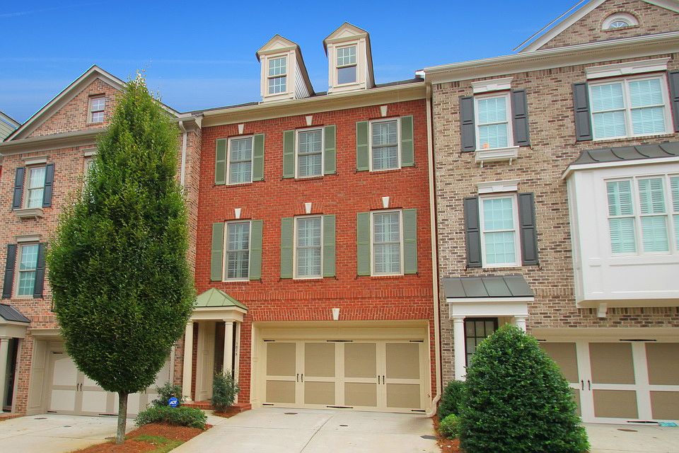 One of the largest floor-plans in the community, this John Wieland brick Townhome features a living room with adjacent sun-room main and a private sitting room in the Master suite. Freshly painted with beautiful hardwoods and built ins on main floor/staircase. Terrace level has full bath and bedroom/office. Parking space across from unit. Community is located near 400, North Point Mall and the restaurants and shopping in Avalon.