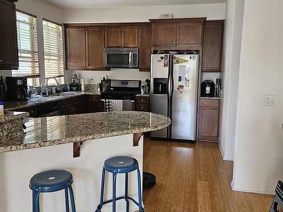 RESORT-LIKE! Beautiful home sweet home! Upgraded kitchen is complete with breakfast bar, granite counters, stainless steel appliances, and custom cabinets. LR has cozy fireplace. Master suite has plush carpeting, ceiling fan, and picture window. Spacious walk in closet! Full bathroom with oversized single sink vanity. Community has pool, gym, spa, bbqs, playground, and plenty of options! Attached oversized two car garage. Tankless water heater and good working appliances. Includes washer/dryer inside the house. House is AC equipped. 1 yr