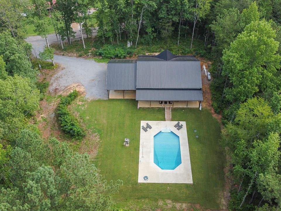 Beautiful 3077 Sq. Ft. Barndominium with in ground pool on 6 acres. Built in 2021 this 4 bedroom 3 1/2 bath home features all tongue and groove walls, wood ceilings, quartz and butcher block counter tops, large pantry, gas fireplace, open floor plan and room for the family to gather after swimming in the 18x36 salt water inground pool. Only 40 minutes to Chattanooga and 45 minutes to Huntsville.
