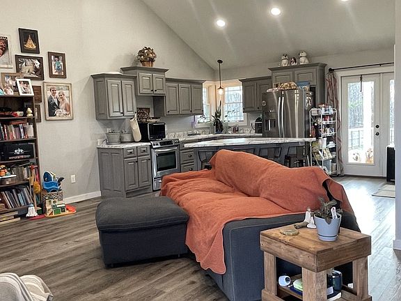 This 3 year old home with an open floor plan boasts cathedral ceilings in the living and kitchen area. The corner fireplace creates a cozy atmosphere in the living room. Featuring 2 bedrooms and a bath and 1/2, this is a great starter home or perfect for someone looking to downsize. The full back porch overlooks a large backyard with a privacy fence. The carport could double as an entertainment space as well.