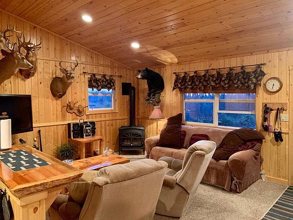 If you are looking for complete privacy surrounded by woods with a quality built cabin this is the place! One of a kind hunting property on 140 acres of great variety of land: from lake & river frontage to high & low ground excellent for wildlife. Seller maintains a nice trail system throughout all 4 parcels with pretty fancy heated deer stands. Home built in 2005 and has 3 cozy Bdrm, 3/4 Ba + half Ba. Open floor plan, custom made kitchen cabinets & furniture. Thermostatically controlled gas fire place provides the heat. You will enjoy spending time in the 3 season porch & outside by the fire pit area. Newer propane Generac generator provides power. You'll have drilled well & holding septic tank. Beautiful pond is within view of the cabin. Property is surrounded on all sides by a public state land (Kettle Lake Wildlife management area). Kettle lake public access is down the road and it's a dead end road. Kettle lake is an environmental lake. There is not physical access to the lake from the property. You would want to use the public lake access. It's a wildlife paradise out there! You can hunt white tail deer, waterfowl, grouse. Fish from the river as well. You have to come see it to appreciate everything this property offers! Set up your private showing today or call with any questions!