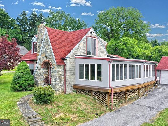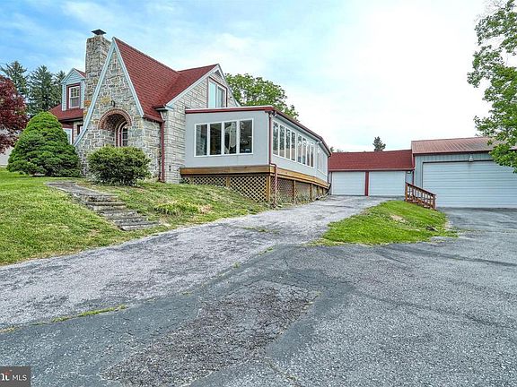 Unique two-story home with lots of character and scenic vistas. Hardwood and tile floors throughout. Upper floor master bedroom suite with master bath, and first-floor bedroom with full bath and walk in closet. Custom features, double Florida room. Upper double garage with adjacent large pole building garage with office suitable for a business and room for a large truck, trailer, RV, boat, lots of possibilities. Double driveway with multiple parking space. Large rear deck area off of driveway with privacy fence and main entrance to Florida rooms. Additional front and rear entrances. All appliances, central air, oil heat with a wood burning and gas fireplace and two gas surplus heaters. Central York School District, close to all amenities. The home is being sold "AS IS"