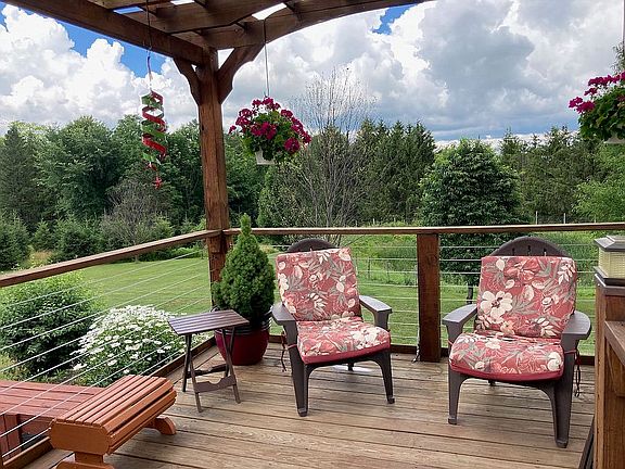 Hillside 4 acres with beautiful views and gorgeous sunsets only 15 minutes south of Syracuse in Upstate, NY. This is a potential multi-generational property. The main home has 3 bedrooms plus an office with a detached 900 sq ft building that was built to be a garage, or comes with contractor plans for a 1 bdrm/1 bath rental or in-law suite.