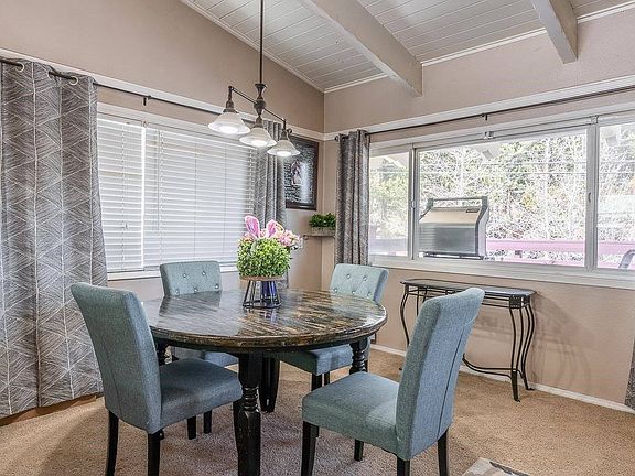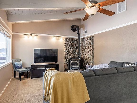 A two-story home with a wraparound Trex deck and fenced-in back yard. The covered entryway leads into a mudroom entrance, followed by three bedrooms and a bathroom downstairs, with the kitchen, dining room, living room, laundry room and second bathroom all upstairs. Two doors lead out to the top deck, and the back bedroom has its own door to the lower deck and backyard. Partial views of Mammoth Mountain's "dragon's back & tail" from the dining area, and distant views of the White's (Boundary and Montgomery Peaks) off the front deck. Enjoy the two-car garage to store vehicles out of the snow, or all your winter and summer toys. Plenty of snow storage to the left of the house when clearing the long and wide driveway that has plenty of room to have friends and family over to visit. Dual paned vinyl clad windows throughout. The metal roof with 3-inch foam insulation underneath. Vaulted ceilings in the living room with an air circulation system that pulls from the top of the room and flows hot air back down into all three bedrooms. The entire upstairs is heated with a pellet stove, and the property has forced air heat as well. This is the ideal home to start a family in or have as your weekend mountain getaway if you live elsewhere! Close to the red line and Snowcreek Athletic Club, as well as being right by the Mammoth Lakes trail system. Photos have been enhanced to remove personal items from them. Call Eric Leach at for more information and please see my 3D virtual tour: CA DRE Lic. #01344486