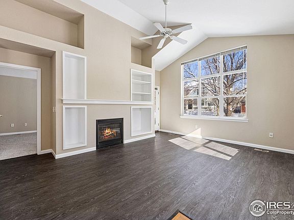 Excellent location in Centerra with walking trails, shopping, restaurants, and schools all close by. Rare 3-bedroom, 3 bathroom End unit 2 story townhome that offers a main floor primary bedroom with 5-piece bath and walk in closet. Kitchen with island, large great room with fireplace and vaulted ceilings. Over 2,400 total square feet including the unfinished basement. Updated with new carpet, new granite counter tops, new paint, new flooring. 2 car attached garage.