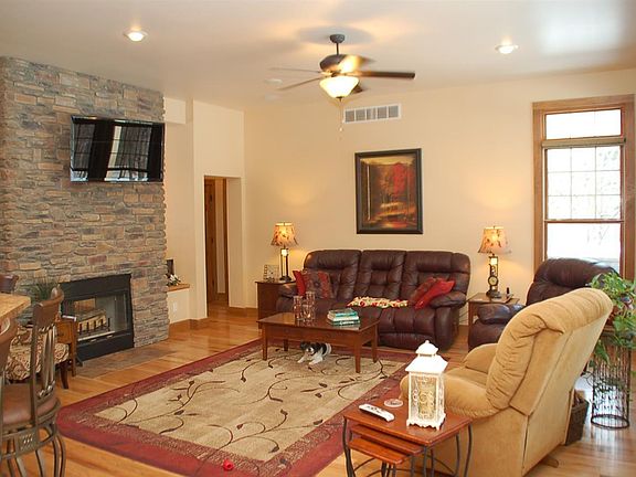 This beautiful custom home is located just minutes from Bloomington's eastside amenities yet provides peace and tranquility. Nestled amongst the trees on 3.5 acres is this 4,500 SF ranch over finished walkout lower level. The main level features 10' ceilings, a 2 sided wood burning fireplace between the dining room and the great room, wide plank Character Oak floors throughout the main, a stunning kitchen open to the great room and a split bedroom plan. The master suite has access to the covered rear porch and features a soaking tub, tile shower with rain head, 2 vanities and 2 walk-in closets. There are 2 more bedrooms; one of which has direct entry into the full hall guest bath. The kitchen features stainless steel appliances, custom cabinets, a pantry and a large breakfast bar. Extra tall windows and transoms surround the great room allowing for loads of natural light and great views of the outdoors. The walkout lower level has a large open rec/family/living area with a kitchenette and a Blaze King wood stove. There is a media/exercise room with an en-suite bath and sauna that could be used as guest quarters, a den/office space, a huge storage room and a workshop. Additional amenities include Rinnai tank-less water heater (gas), whole house speakers, seller owned propane tank, high-end micro mesh gutter guards, wine cooler & beverage fridge in kitchenette, hand hewn engineered hardwood in lower level, 8' foot entry doors, solid wood 6 panel interior doors, natural stained trim, spray foam insulation, Tempstar HVAC system, California Closet systems in both master closets. You can enjoy outdoor entertaining gathered around the fantastic fireplace next to the covered back porch while watching the wildlife and change of seasons. There is a large storage shed with electricity for yard equipment and an attached, oversized 2 car garage with high ceilings that easily accommodates large vans/SUV's and trucks. Schedule an appt. today!