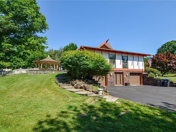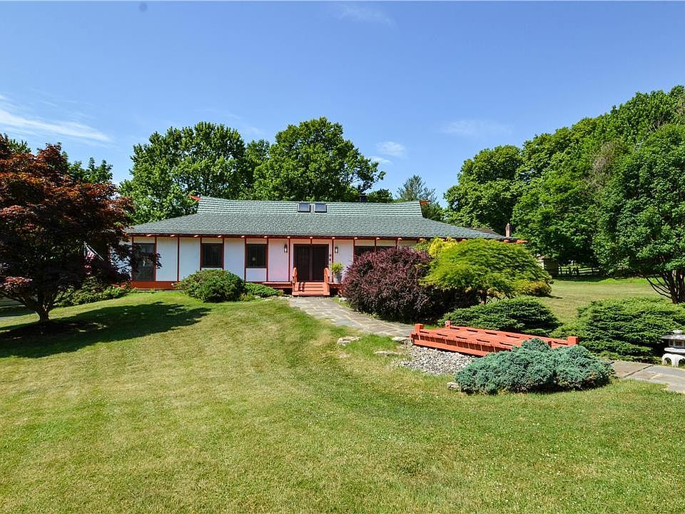Discover this exceptional contemporary home, crafted by renowned architect Harold McNeil. Nestled in the serene Robin Hood development, this residence combines tranquility with sophisticated design on an expansive lot in a quiet neighborhood. The foyer features an enchanting entry waterfall & garden, cathedral ceilings, & 4 large skylights. Adjacent is a sitting room with a cozy fireplace & built-in cabinets, & an open-concept family & dining room separated by a stunning fireplace with a stone base. The eat-in kitchen boasts Quartz countertops, a stylish backsplash, & a dining area with sliders opening to a spacious deck. The primary bedroom is a sanctuary with a renovated en suite, showcasing tile floors, a stone wall, a tiled shower, a Jacuzzi tub, & a large walk-in closet. 2 additional bedrooms offer comfort. The finished basement adds incredible value & versatility, including a welcoming foyer, a laundry area, half bath, office, expansive rec room with built-in shelves & recessed lighting, & a storage room & workshop. The exterior features a mature front lawn with a walkway to the front door, a large Trex deck with access to a gazebo, & a fenced area. The home is equipped with a diesel-powered generator, a durable metal roof, & a state-of-the-art smart home security & lighting system. The design blends Japanese architectural elements with modern conveniences for an exceptional living experience. Don't miss the opportunity to own this extraordinary home!