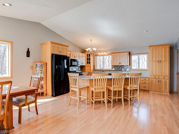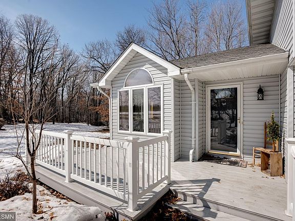 Unique opportunity for your own private oasis within commuting distance to Twin Cities/St. Cloud! Beautiful modified 2 story home on 4.9 acres offers plenty of room for entertaining with open kitchen/dining/living room floor plan. Gorgeous blue pine log addition to home features floor to ceiling stone fireplace and offers stunning loft and panoramic views of the pond/wood setting to enjoy the wildlife. Many updates including newer roof, septic, A/C and new carpet throughout. Craft room/storage area in lower level. Move-in ready and a must see!