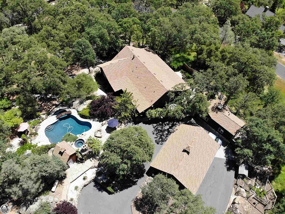 This home has had one owner since it was built in 1984 by Feriani Construction. The 3.12 acre property is located in the Lambert Lake development 2.6 miles from downtown Sonora, CA. The main home is 2,325 sq. ft. with open floor plan for the main living area, including vaulted ceiling and a sun room. The custom kitchen includes granite counters, custom oak cabinets, a new Bosch gas range and electric oven, and is open to the main living and dining areas for an expanded living and entertainment experience. In addition to central heating (a 2007 propane/electric HVAC), the house has a wood stove in the main living area. Tile floors are found in the kitchen, bathrooms, and main traffic areas while a wood floor enhances the dining room area, and carpeting provides warmth to bedrooms and main living room areas. Custom stained glass windows enhance the transoms above the bedroom doors and master bathroom cabinets. A separate family room has a theater style, built-in, oak cabinet. Two large covered porches on the north- and south-facing sides of the house totaling 896 sq. ft. support the open feel and outdoor engagement to the house. A 288 sq. ft. unfinished basement area provides additional convenient storage. A 612 sq. ft. one bedroom, one bath cottage with a kitchenette including a Bosch gas cooktop and small office built in 2014 is located immediately adjacent to the main house. Heating is provided by a Hampton decorative gas stove and cooling with an Air evaporative cooler.