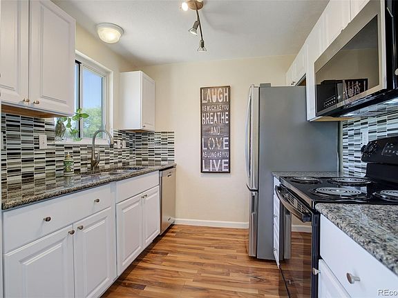 Welcome to this beautifully updated ranch style home in the Highpoint neighborhood. As you enter the light and bright living room you’ll notice the timeless appointed kitchen with white kitchen cabinets, elegant granite countertops, stainless steel appliances and open dining area. The main level is complete with the primary bedroom, full bath, plus two additional bedrooms. The basement is completely finished with an expansive family/recreation room, 4th bedroom (non-conforming), a possible 5th bedroom (or use as an office or workout room), a 2nd bath, and a spacious laundry/utility room. The large back patio is ready for the Colorado summer evenings; bring the cozy outdoor furniture and your grill! The backyard backs to the greenbelt, is fully enclosed and features a shed for extra storage. This home has many recent improvements including the newer roof and gutters, furnace, air conditioning condenser and hot water tank. Located in the highly sought after Cherry Creek School District. Easy highway access to I-225, I-70, and DIA. Less than 5 miles to the Nine Mile Light Rail Station.