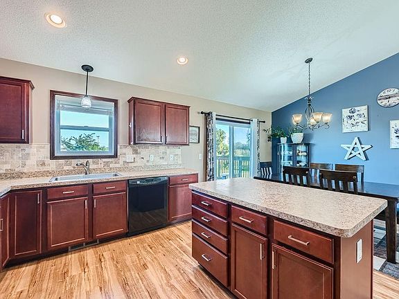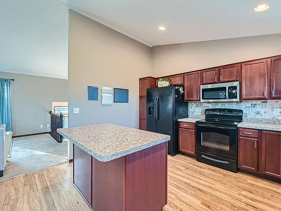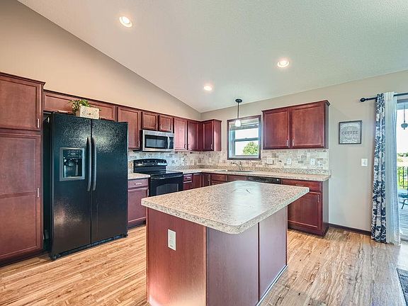 Welcome home to this well cared for, move-in ready home! The upper level has a convenient open floor plan with stunning vaulted ceilings. The kitchen has ample cabinets & counter space featuring a convenient kitchen island. You will love the spacious living room with a large picture window. The dining space opens to the large deck off the back of the house through the sliding glass door. The deck overlooks the huge over .5 acre lot with an in-ground sprinkler. The upper level is complete with the large primary bedroom with a walk in closet, the second bedroom and a full bathroom. The lower level is a walk-out with its own access to the patio under the deck from the generously sized family room. Complete with 2 additional bedrooms and a 3/4 bathroom. The roof was installed just this past year in 2024. This home has been lovingly cared for and it shows! Come visit today!