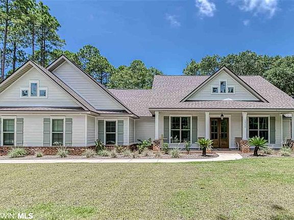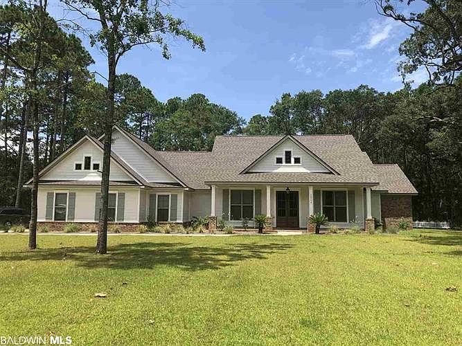 Beautiful Certified Gold Fortified built craftsman style home newly constructed in 2019 located in the prestigious Martyn Woods neighborhood!! The lot is almost 1 acre and has huge oaks trees in the large back yard adding a charm of shade and comfort. This 4 bedroom, 3 bath home has an Open floor plan with a wonderful spacious family room with wood flooring and fireplace, the gourmet kitchen features a serving island, ample cabinets and storage with upgraded grey white gorgeous granite countertops, stainless appliances, and a walk-in pantry. The master bedroom overlooks the large backyard, there is an extra large master bathroom and walk-in closet, separate vanities as well as a walk in shower with a garden tub. The additional 3 bedrooms have large walk in closets with separate bathrooms. The laundry room is conveniently located next to your incoming Mudroom. The laundry room is large enough for extra storage and has an additional laundry sink. Martyn Woods Subdivision has a Tennis Court and ownership of a Bon Secour Bay River fishing pier with cabana. This subdivision is a few minutes to the beaches and convenient to the Beach Expressway and Highway 59.