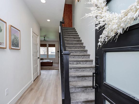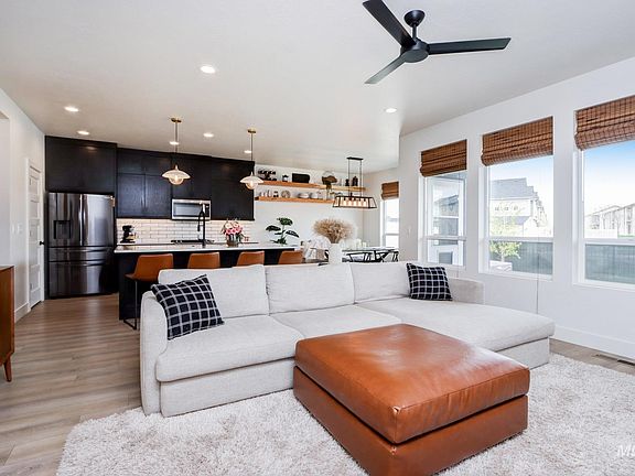 Literally found at the middle of everything the Treasure Valley has to offer fun and needed, this one owner home in Pine 43 is a one of a kind, custom finished home, found minutes from shopping, restaurants, health club, entertainment, movies, medical facilities, I-84, with The Village at Meridian. From the locally crafted and designed, built and installed 10' floating shelving found in the dining area to the top of the line next to no maintenance installed back yard turf there is ZERO left to do---just move in. ALL appliances are included-frig, washer and dryer AND extra storage and shelves in the garage. Did I mention the included almost new hot tub? The primary suite enjoys morning sunlight and found for ultimate privacy separate from secondary bedrooms and BIG enough for a KING size bed-WOW!!! Ownership at Pine 43 enjoys a community swimming pool, tennis and pickle ball courts, and 1/2 basket ball court.