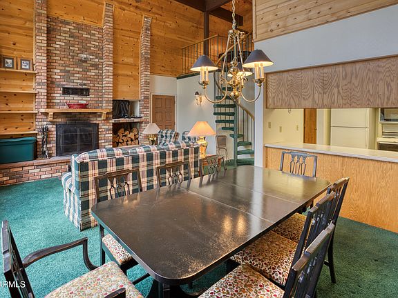 This charming 3 bed, 2 bath home is ready for the next family to come along and make lifelong memories. The main floor has one bedroom with bath and lots of entertainment space. The kitchen opens to the family room with a wood vaulted ceiling and gorgeous brick fireplace. Upstairs offers 2 bedrooms with another bath and loft area. The back patio is perfect for a large table and overlooks the pine trees. There is lots of storage throughout, including a seperate area under the home for you sleds, bikes and all your toys!