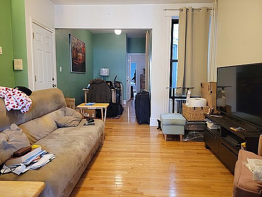 This lovely OVERSIZED 2 bedroom RAILROAD style apartment is on the 2nd floor and is SUPER sunny with windows in every room. This large railroad features hardwood floors, a modern kitchen and bath, good closet space and stainless steel appliances. Located in a well maintained building in the heart of Ridgewood, close to both the L and M trains. Heat and hot water is included. Cats are ok and small to medium dogs will be considered on a case by case basis. Available February 15th Applicants must have GOOD credit AND 40X the rent verifiable income or guarantors. ** Unit will be painted white, updated photos to follow. Broker fee is 1 months rent Includes use of shared yard.