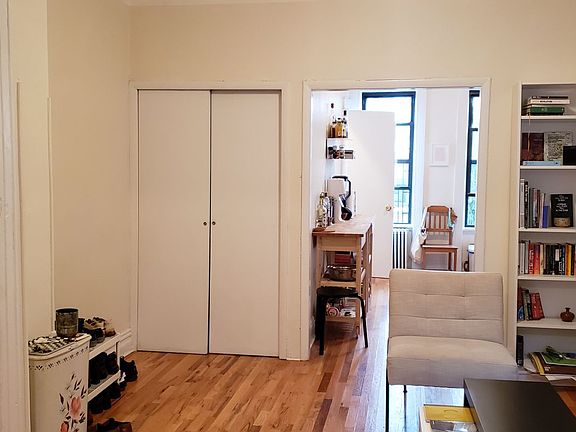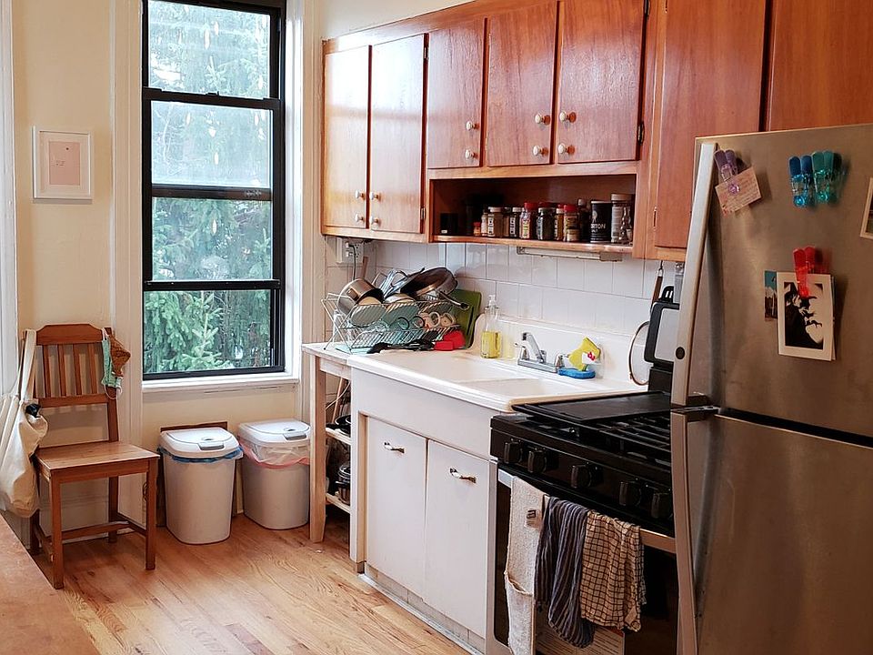 This lovely OVERSIZED 3rd floor 2 bedroom RAILROAD style apartment is so sunny! This large railroad features brand new hardwood floors, windows in every room, a double cast iron sink and claw foot tub, good closet space and stainless steel appliances. Located in a well maintained building in the heart of Ridgewood, close to both the L and M trains. Heat and hot water is included. Cats are ok and medium sized or small dogs will be considered on a case by case basis. Applicants must have good credit and 40X the rent verifiable income or guarantors.