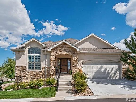 Immaculate Stone & Stucco ranch style home is ready to call "your home" in Plum Creek Fairway Vista community. This 3 bedroom, 3 bath home has been exceptionally cared for and is move-in ready. Through the front door, you are invited into the open concept floor plan with beautiful hardwoods through most of the main level. The office is located just off the front entry &the Great room boasts vaulted ceilings & cozy fireplace for chilly Colorado days. The kitchen has Stainless Steel appliances, tile counters, a decorative tin backsplash, complete with breakfast bar. The dining room walks out to a private wrap around deck, where you can enjoy sun or shade daily. The master suite has its own door to covered deck along with a 5 piece bath, with lovely tile, toilet closet, and walk-in closet. The basement was thoughtfully finished with a large recreation room, 2 additional bedrooms, a full bath, and storage area. Plantation shutters and updated lighting throughout. Conveniently located!