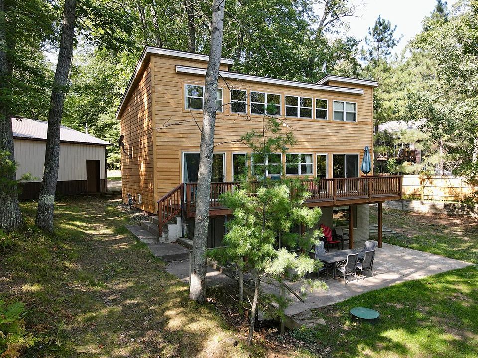 What a beautiful setting on incredible Lake Towanda. Gradual slope to water’s edge, and you will want to walk right in when you hit the sand frontage. The Lake is 139 acres, so big enough to be full rec and small enough to be quaint. This is also a great place to kayak. The dock is included, and you bring the boat. The home is walk in from waterside, to kitchen, family room with fireplace #1, and a great mud room and utility room to take off those lake clothes. The main floor then has a beautiful living room with fireplace number 2, bedroom, and bath. Upstairs you will find another bedroom, and loft area, presently being used as more sleeping area, or 3rd bedroom. Back to waterside is a nice patio and firepit area. The roadside of the home has a pleasant drive, and a 3 car garage, great garage for cars and all the toys. Near Minocqua, and all that comes with the Northwoods. Come enjoy the lake.