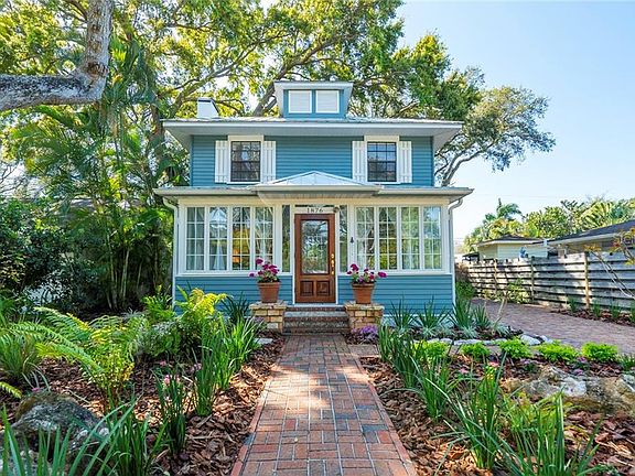 Welcome to the 'House on Rose Street' where simplicity and character abound! One step through the stained-glass door of this 2-story historic home and you will fall in love! You can find your future home tucked away in sought-after West of Trail; minutes away from downtown Sarasota, Siesta Key Beach, and Sarasota Bay. Enjoy the front porch with its numerous windows that allow the air to move freely throughout the first living level. Built in 1926 this home features heart pine floors, a wood burning fireplace and an updated kitchen with granite counters, antique cabinetry, and a farmhouse sink. The upstairs living level features 3 bedrooms and a bath while the second bath and laundry are conveniently located on the main living level. The master bedroom is expansive allowing room for additional seating. This architectural style compliments the warm and sultry Florida environment and lives side by side with nature! The beautiful tropical setting offers lush landscaping, brick patio, and large built-in firepit.