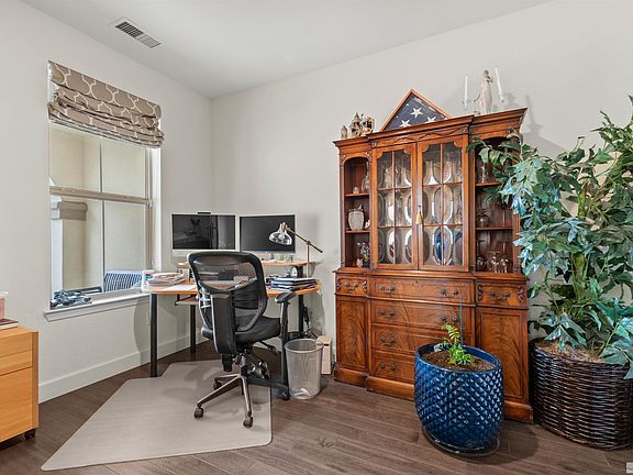 Presenting a contemporary one-level home that surpasses the appeal of a model home. Its modern design showcases travertine-style ceramic tile flooring throughout the living area. The kitchen boasts a GE Profile stainless steel appliance package and a built-in buffet with upper cabinets. Step outside to discover a 9x16 ft year-round Pool Spa By Robert Allen Pools, featuring a Pebble Tec finish. Relax by the pool and indulge in the convenience of an outdoor kitchen with a fridge and granite counter., it also has a four-burner grill, rotisserie, and infrared burner. This outdoor oasis is covered by a western red cedar pergola, ensuring privacy. The professionally landscaped exterior is fully irrigated. Additionally, a gas fire pit adorned with beautiful glass stones serves as a captivating focal point in the exquisite backyard. Inside the house, you'll find custom window treatments, including motorized window shades in the great room and master bedroom. The entire home is adorned with custom window treatments, and ceiling fans are installed in all the bedrooms. Beyond the three full bedrooms, this home boasts a dedicated office with engineered wood flooring and elegant French doors. The garage features a heavy-duty epoxy finish and a spacious tandem three-car capacity. Numerous upgrades have been made, too many to list here, so be sure to review the attached listing for a comprehensive overview. Rest assured, showcasing this home will be an absolute pleasure. Also see the attached list for all of the upgrades to this house.