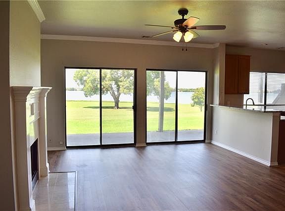 Fantastic Waterfront, Updated move-in ready 2 bed 2 bath condo on Lake Ray Hubbard. Large living area w gas log fireplace, double sliding glass doors for awesome panoramic views. Dining area, delightful island kitchen w granite, breakfast bar, & refrigerator. Master bedroom w bath & walk-in closet. The utility room is ready for Full-Size washer or dryer. Updated flooring and secondary bathroom updates. Relax on the covered patio and enjoy the sunsets.