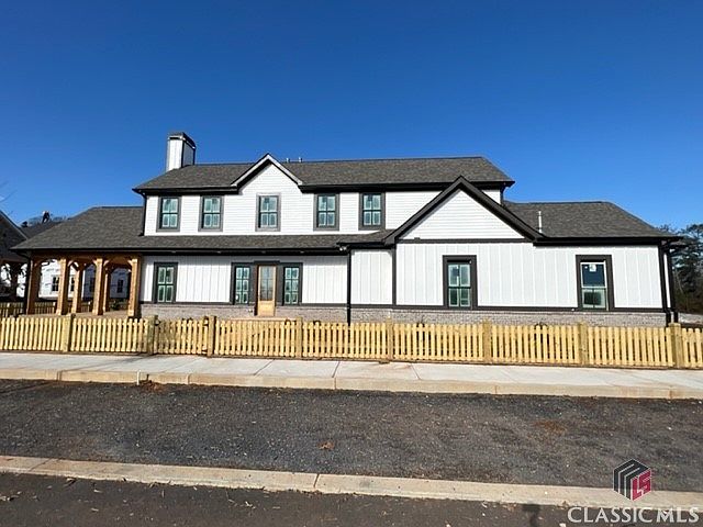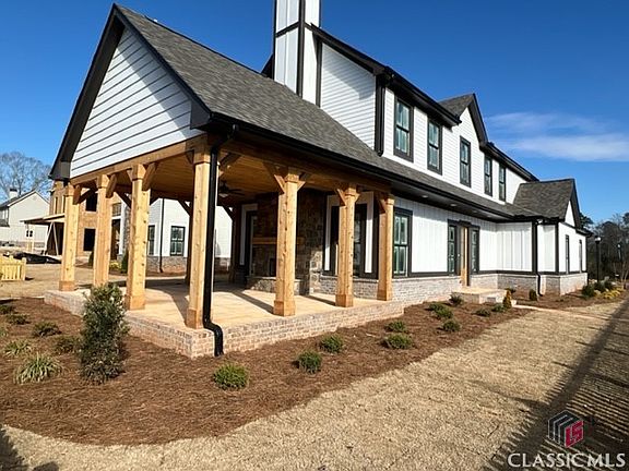 Welcome to Luxury Cottages living in Watkinsville’s premiere community Trove. Cottage 4 features the primary bedroom on the main with 4 bedrooms and 3.5 baths. On the main level is a foyer opening into the family room, gourmet kitchen, family room, office, and primary bedroom. The gourmet kitchen features granite countertops, a tile backsplash, an island, a pantry, gourmet stainless steel appliances, and hardwood floors. The primary bedroom has a beautiful bathroom and walk-in closet. Stairs w/ oak handrails and wrought iron spindles lead upstairs. 2nd-floor features a flex room, 3 secondary bedrooms, and 2 baths. The exterior features a covered loggia with a fireplace.