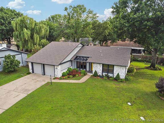 Meticulously maintained on over-sized corner lot, this Jenks Schools move-in-ready home features a family room with a cathedral ceiling, fireplace, and built-in shelves, seamlessly connected to a sunlit breakfast nook. The large entry opens to formal living and dining areas. Recent renovations include laminate flooring, fresh paint (interior and exterior), roof, upgraded kitchen countertops and backsplash, modern light fixtures, and hot water tank. The property boasts impeccable details for a pristine living space. Professionally landscaped yard with tons of perennial blooming flowers and shrubs perfect for entertaining. Excellent location near Tulsa Hills Shopping Center, Page Belcher Golf Course, and Turkey Mountain Urban Wilderness Area. Close to shopping, banks, medical facilities and highway 75.