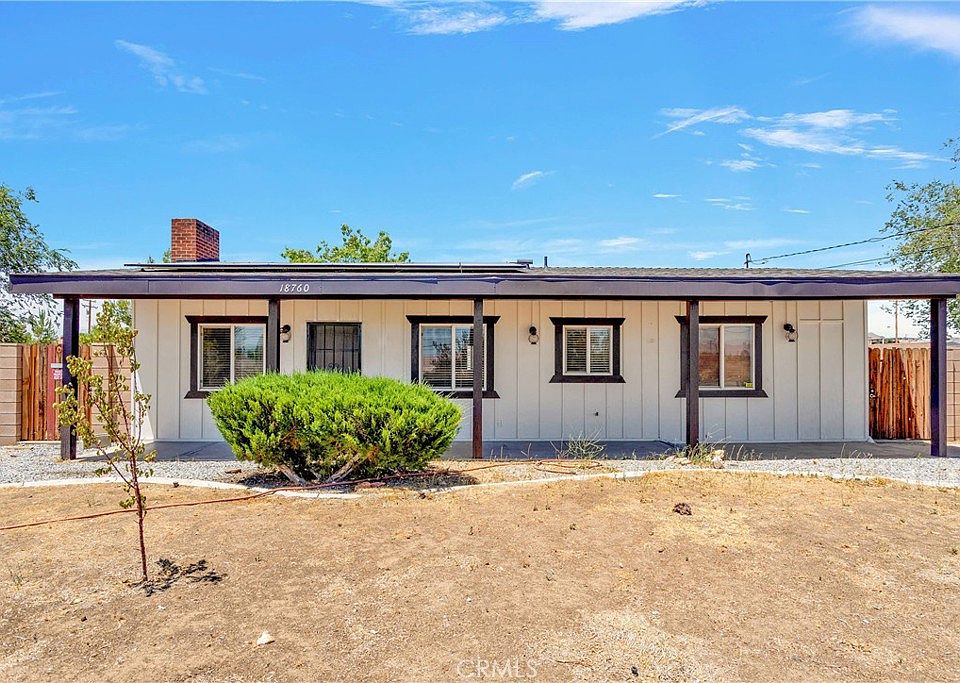 Welcome to your new home at 18760 Corwin Rd, Apple Valley, where country living meets modern comfort. This charming property sits on a spacious lot, offering ample room for relaxation and entertainment. With a 6 ft block wall providing privacy, you'll enjoy peace and tranquility. The home features convenient outbuildings, a detached garage, and mature trees, adding both functionality and charm. Inside, discover new flooring, charming tile fireplace, and kitchen and bedroom spaces. With stunning views and a serene ambiance, this property is the perfect retreat. Don't miss out—schedule a viewing today and make this your dream home!