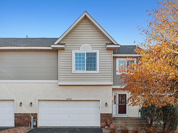 Discover this tempting 3-Bedroom, 4-Bath townhome, boasting wonderful updates and nestled in a great Lakeville neighborhood! The foyer is sunny and welcoming, with a large coat closet and an adjacent guest half bath. The living room is a WOW, with a two story ceiling with expansive solar tinted windows, and a gas fireplace. The open concept floorplan is ideal for entertaining, with the living room flowing into the dining room. The sleek kitchen boasts laminate flooring, abundant glowing cabinetry, a breakfast bar and expanses of workspace. Travel up to find the spacious owner's suite, with a large bedroom with vaulted ceiling, W/I closet and private full bath with separate tub and shower. Find also a 2nd bedroom, a full bath and a loft overlooking the living room. The lower level is complete with a family room with refrigerator, a bedroom and full bath with heated floors. Deck, attached 2-car. Updates include new flooring, carpet, paint, roof and siding in 2022; new furnace in 2021.
