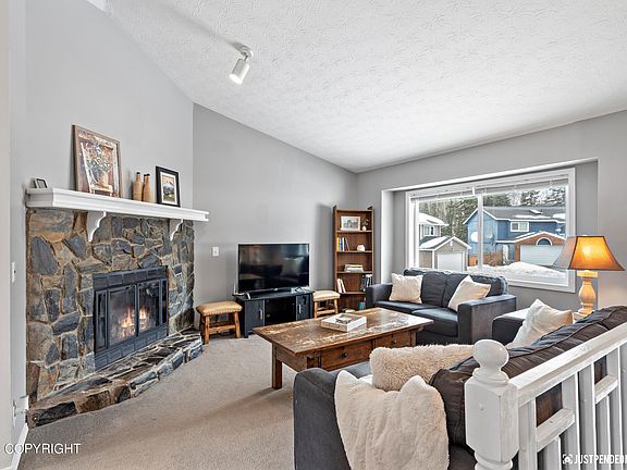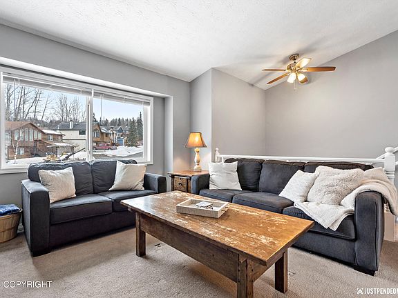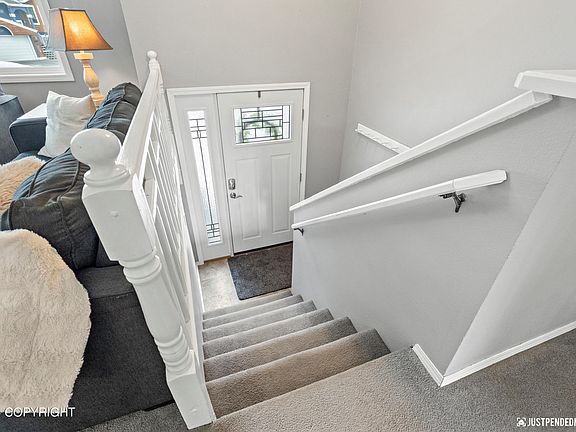 Stunning 4-bed home with mountain VIEWS and natural light streaming through its southern exposure. Beautifully updated kitchen boasts elegant solid surface counters and stainless-steel appliances. Bright and inviting interior with cathedral ceilings, a rock fireplace, and spacious bedrooms (2 up 2 down). Newer roof, windows, and water heater for your peace of mind. Check out the transformed -->--> expansive storage and workshop space in the crawlspace area (Hobby Area!). Accessible both from the exterior (backyard) and crawlspace access (through the under stairs closet) inside. Yes- you can stand up inside! Backyard access onto a spacious deck from the garage. New Pex piping throughout. New sump pumps in crawl space. New Andersen xliding doors in kitchen and garage. New refrigerator and dishwasher. Easy commute to JBER and town.