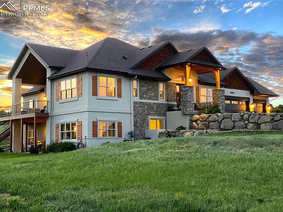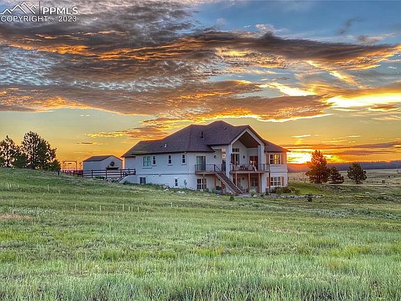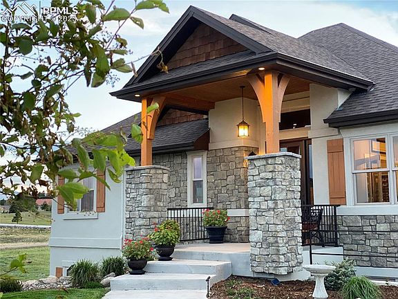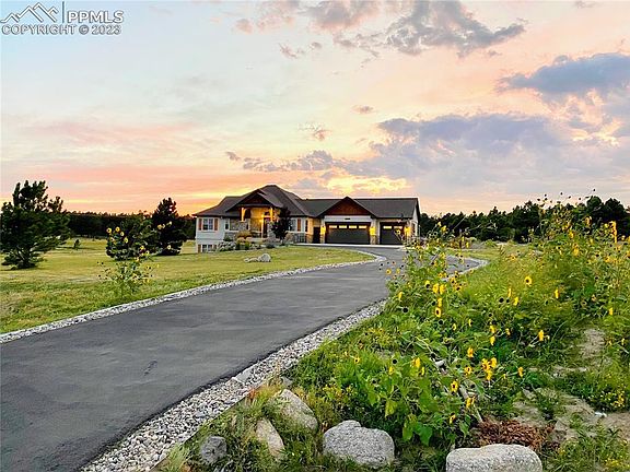 Welcome to your very own ranch retreat! Situated on a sprawling 3-acre landscape adorned with wildflowers, trees, picturesque prairies, and peak views. This 5 bed, 4 bath ranch retreat offers a harmonious blend of natural beauty and modern luxury. Soaring ceilings will draw you inside, where you will discover rustic elegance with modern comforts for the entire household. Cozy up and relax in the great room, with its floor to ceiling stone gas fireplace, custom mantel, and built-in cabinetry. The chef’s kitchen boasts stainless steel appliances, a large island, ample storage space, and granite throughout…a dream for culinary enthusiasts. Escape to the master retreat where you can unwind and rejuvenate, while enjoying a trifecta of views including: forest, peak and prairie. The expansive 5-piece bath features a large soaker tub, tiled shower, dual vanities and adjacent closet with built-ins. Main level laundry! Venture down to the walkout basement, where you will find 3 bedrooms, 2 full bathrooms, a kitchenette, family room, bonus room/office area and concrete patio. This lower level provides privacy and additional flexibility for all. Whether enjoying the longhorns lowing from the front porch, taking in views of the peaks and stargazing from the deck, listening to the gentle rustling of the trees or the melodious songbirds from the fenced backyard oasis -a great place to corral the kids and pets or to spend the afternoon gardening- you can find respite from the bustling world and a place for relaxation. This property also boasts a spacious shed and an oversized 3-car garage for storing all your vehicles, tools and equipment. Within a short drive, you will find yourself in nearby downtown Monument, with amenities, charm, award-winning district #38 schools, HWY 83 and I-25. Take the reins and don’t miss your opportunity to own this extraordinary rancher retreat, where you will create memories that will last a lifetime. This home is a slice of Western paradise!