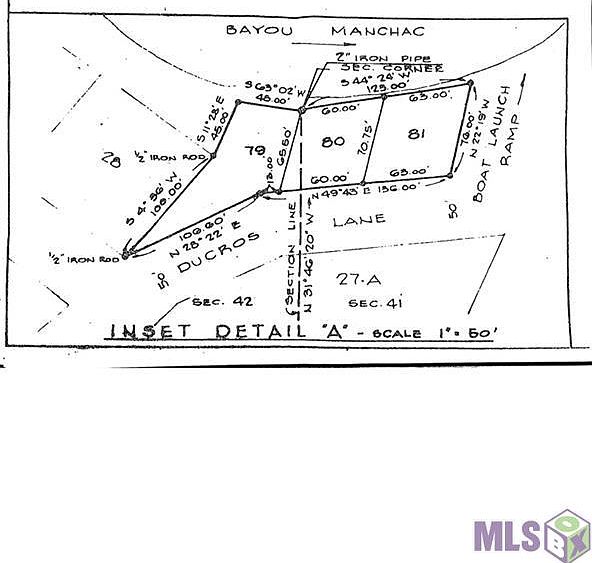Lot 80 and 81 are being sold together. Lot 80 is 65.5x60x70.75x60. Lot 81 is 63.76x63x70.75. Both overlook Bayou Manchac. There is a public boat slip directly on the side of this lot. .19 acres