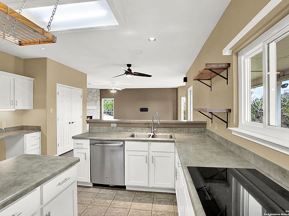 Welcome to your own private hill country paradise where natural beauty is abundant! This stunning property features a top-of-hill location providing unbeatable views of sunrises/sunsets, a rare ag exemption for beekeeping (prop tax savings), an in-ground outdoor pool w/waterfall, patios & star gazing-this home is the perfect place to unwind. The cov'd patio is an ideal spot to enjoy meals, entertain guests, or relax w/a good book. The recently completed casita incl a kitchen, living/bed, & full bath. W/plenty of natural light & a tranquil setting, it offers a private & comfortable space for guests and is also ideal as a studio. Other perks incl a barn w/encl attic storage, a greenhouse, a fenced & irrigated garden, a fenced chicken coop (current owners repurposed as a dog run for the furry friends), 2 secondary bedrooms upstairs plus a gameroom/office space/addl living area-all offering miles of breathtaking views, detached garage w/workshop (ample space for parking, storage, hobbies), 1st floor primary suite (ideal haven featuring an en-suite bathroom w/sep tub & shower, & 2 sinks). Schedule to see this breathtaking hill country retreat, opportunities are unparalleled.