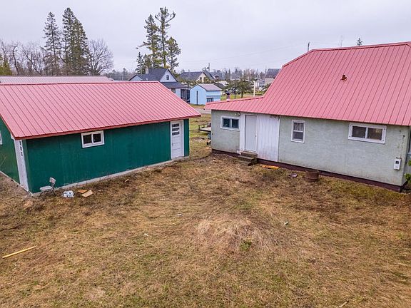 2 BR, possibility of 3rd BR. Big ticket high-quality upgrades in 2013: cabinets, metal roof, furnace, all wiring. New this year: paint, all carpet, front door. Includes: electric range and refrigerator, 2 car extra-deep garage for woodworking etc. Sewer+well. installed. Land: 1/2 of a football field (.6 Acre) is large enough for 2nd home in the woods. Lots of adjacent woods/river. Stream on property.