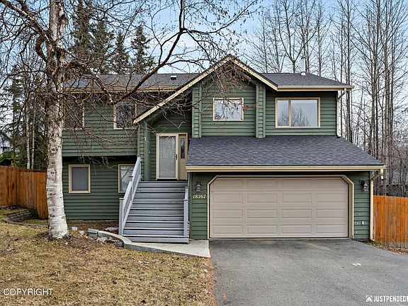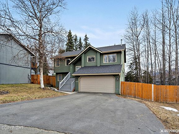 Well maintained 4 bedroom, 2 bathroom Eagle River home tucked in back of a cul-de-sac. This home has an open living, kitchen and dining area upstairs, with wood fireplace, small deck great for BBQing all year round. Downstairs you will find a family room with a gas stove, 2 bedrooms, 1 bath and laundry room. Home backs up to green belt and has a fully fenced yard and firepit.