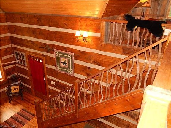 Magical Retreat Nestled in the Heart of the Great Smoky Mountains bordered by Big Bald Creek. 2 Well maintained log cabins on 9 acres that include a main log home & log guest cabin. Huge stone fireplaces & Hardwood floors with Hot tubs situated on the covered porches. Several Pavilions for viewing & listening to the creeks. Currently being used as vacation cabin rentals with unbelievable income. See BearCreekcabins.net Buyer to verify Septic system capacity..records not complete
