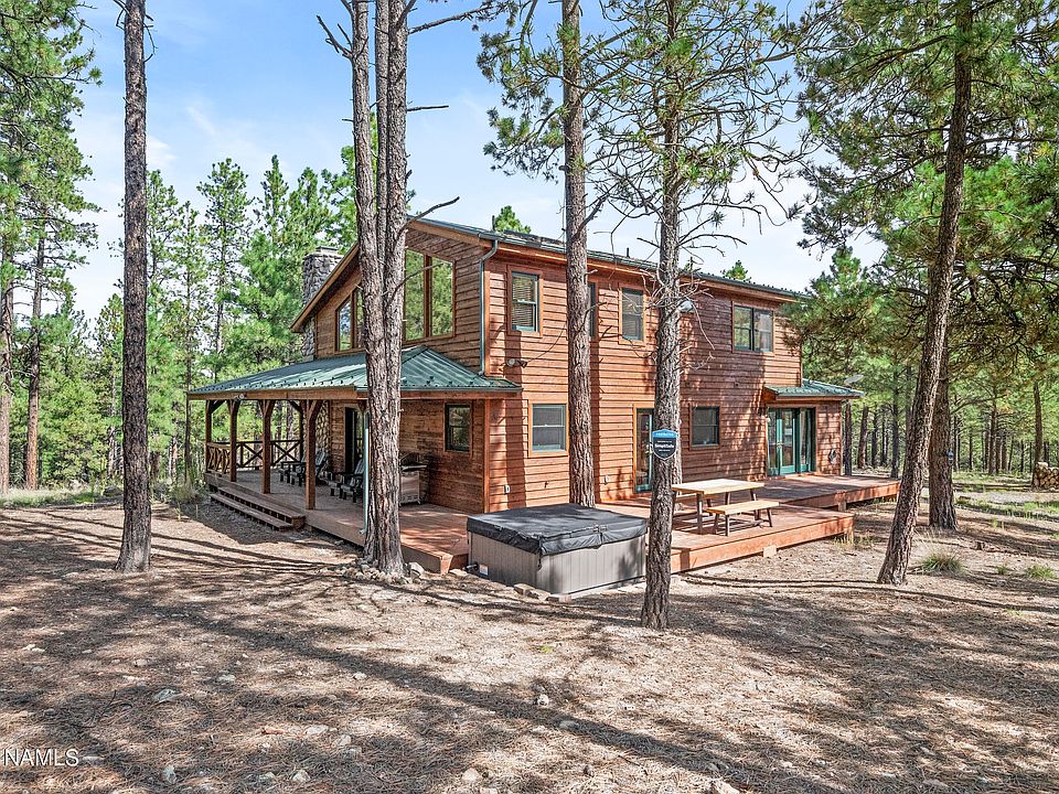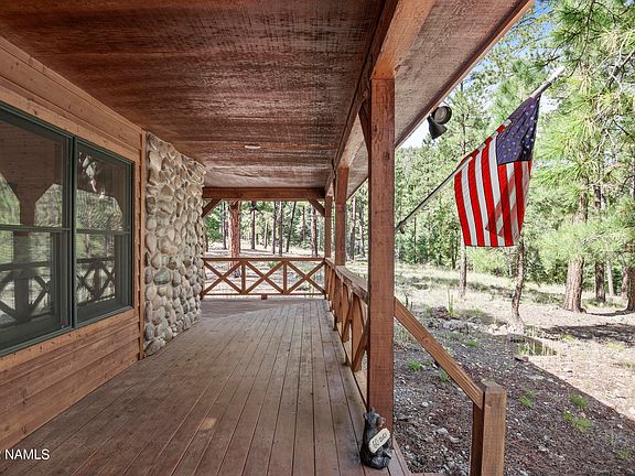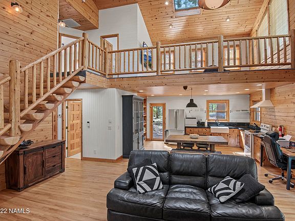 Backing forest in a gated community just south of Williams this gorgeous cabin checks all the boxes for complete peace and serenity minutes from downtown. Enjoy the towering Ponderosas from the wrap around deck in two story home with majestic river stone fireplace and soaring ceilings. Views from every room. Attached two car garage to keeps your toys warm in the snow. Walk for miles into the forest from your yard along game trails.