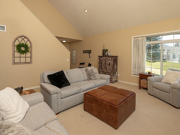 Offering the perfect blend of contemporary elegance & functional design, this home offers a lifestyle of comfort & convenience. Care-free living at its best in this 2-bed, 2-bath end unit townhome nestled on a cul-de-sac & boasts breathtaking water views & abundant natural light. Vaulted ceilings, gas fireplace, updated kitchen & baths, new light fixtures throughout, new furnace & A/C, large primary bedroom w/2 closets, including a walk-in, a quiet loft area & patio area w/great view. Enjoy the convenience of a 2-car attached garage and loft area. Close to downtown amenities and picturesque walking trails.