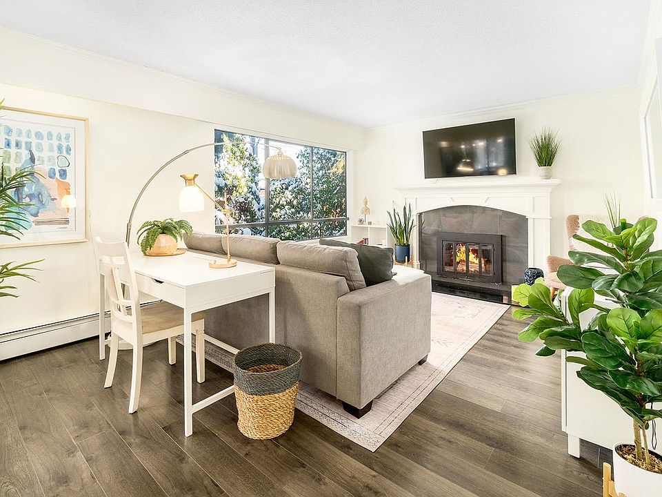 Introducing this rarely available 2 bed/2bath corner home located in the BEST Neighbourhood of Kitsilano! This amazing home presents a large and functional layout with a semi-open kitchen that flows seamlessly into the dining and living area. Cozy up on the couch while enjoying the wood burning fireplace. Large primary bedroom fits a king size bed with great closet space while second bedroom is perfect for a nursery, guest bedroom or office space! An updated bathroom with INSUITE laundry and spacious patio rounds out this perfect Kits home! Parking and storage included. Prime location with steps from the best shops and restaurants on West 4th, transit, amenities, popular beaches, Granville Island and Downtown! Open House Sat Jan 7 & Sun Jan 8, 2-4pm.