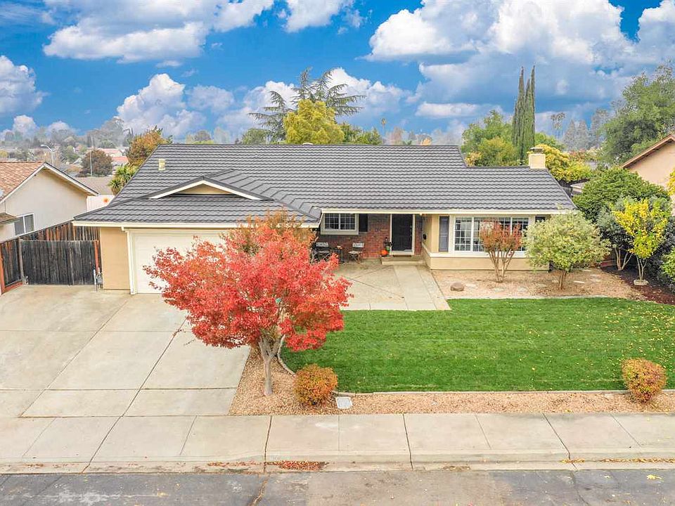 Sunset East! Renovated home; recessed can lighting, classic light fixtures, ceiling fans throughout, newer dual pane windows & custom paint. Covered front porch. Wood laminate floors in common areas. Step down living room w/ large slider leading to the backyard. Open concept kitchen w/ Quartz countertops & tile backsplash, stainless steel appliances, antique white cabinets with pull shelves and soft close drawers. Master bedroom w/ floor to ceiling mirrored closet doors & renovated bathroom. 2 bedrooms share a hallway bathroom. Inside laundry room. Backyard w/ raised deck & lawn, lovely path detail, paver patios and built-in fire pit. Top-rated schools are walking distance away. Backyard views.