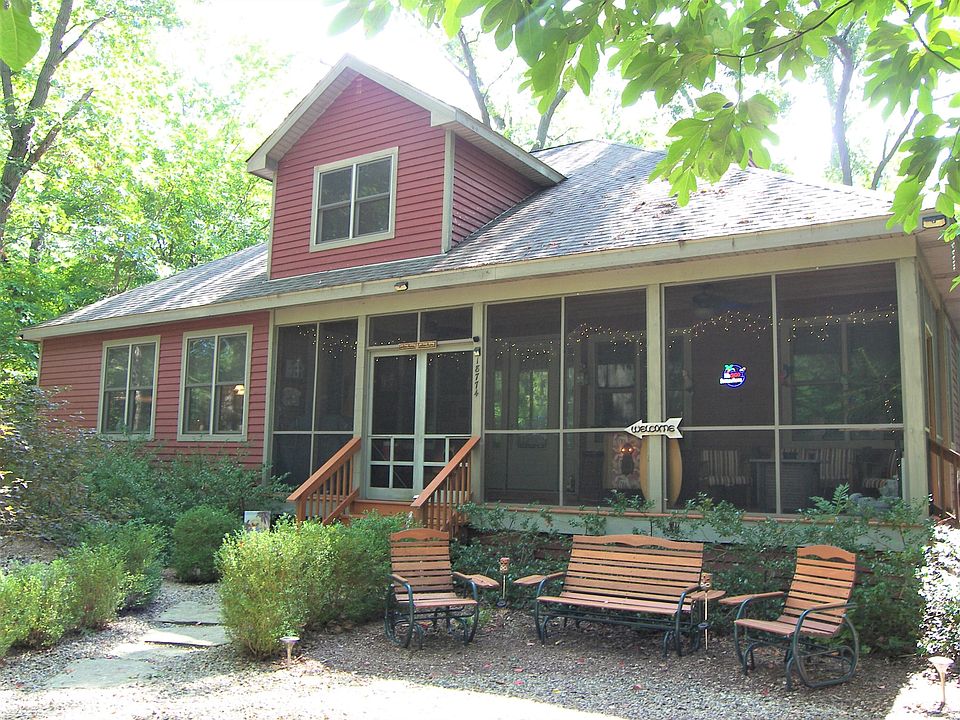 Harbor Dunes Cottage Ready to Love! This expanded Pheasant Run design offers 3 bedrooms, 3 baths & features cherry floors, granite counters, kitchen island w/seating, vaulted ceilings and double-sided fireplace between living room and den. An abundance of natural light spills in through several sky lights and many windows. Outdoor entertaining has never been easier with the screened porch. Also offers main level laundry room, kitchen pantry closet and newer shed for additional storage. The outdoor firepit area is the perfect way to relax and unwind. Just a short distance to the Association Pool and Club House and moments from downtown New Buffalo. This cottage is close to all things Harbor Country, yet can feel as far away as you'd like your retreat to be! Make Harbor Dunes Home!