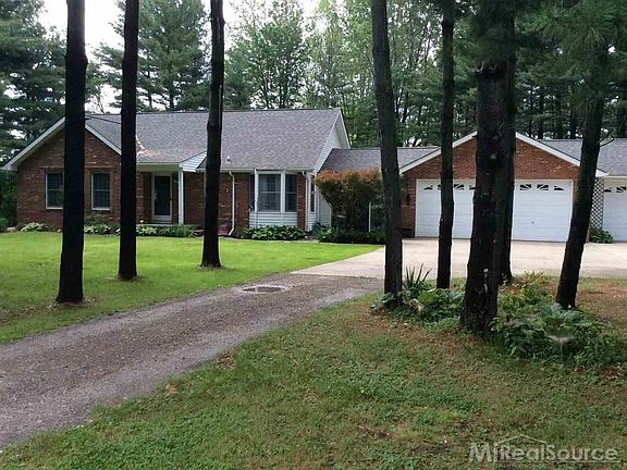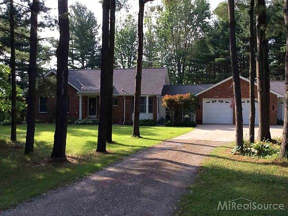 Charming 3 bedroom, 2 bath ranch situated among mature pines giving you that "UP NORTH" feeling. Full deck length back of home. 3.5 car garage with 3 front doors and 2 rear garage doors with a work bench in first bay. Newer GFWA Furnace, Hot Water Tank, Sump Pump and Water well pump installed. Back up sump pump ready if new one fails. New roof 2010, new A/C 2013, gas line in garage for future heater. Anderson windows. 6 ft. door walls off Master BR and Living room. Fireplace gas/natural. Full basement with glass block security windows and ready to finish to your liking. Extremely nice professional pool table/accessories as well as all appliances will stay. Unfinished 2nd level ready for addition room and bath. New hardwood and laminate floors, new front and side storm doors, enclosed breezeway for added living space. Hughes Net as well as Direct TV satellite systems installed.