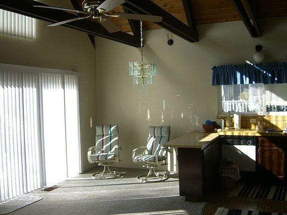 Charming A frame home with Farm House design elements will capture your heart upon arrival! This 2 bedroom + Bonus loft/master suite, 2 bathroom home has 1,248 SF and has been updated throughout. Enter to find gorgeous exposed natural tongue & groove ceilings with white wood beams in the open concept living room/kitchen. Nice Bamboo wood flooring throughout the lower level. Ethanol gas fireplace to keep warm in the winter. A shiplap statement wall with double french doors that lead to the level backyard with golf course views. Enjoy outdoor entertaining on 2 stamped concrete patios, throw some horseshoes or just take in the beauty of the 5th Fairway at Hidden Valley Lake Golf Course. Remodeled kitchen includes a large farm sink, new cabinetry, high quality Granite countertops & subway tile backsplash + newer stainless steel appliances. The main level bathroom with barn door, has new tile flooring, new single sink vanity and tub/shower combo with tile surrounding + indoor laundry.