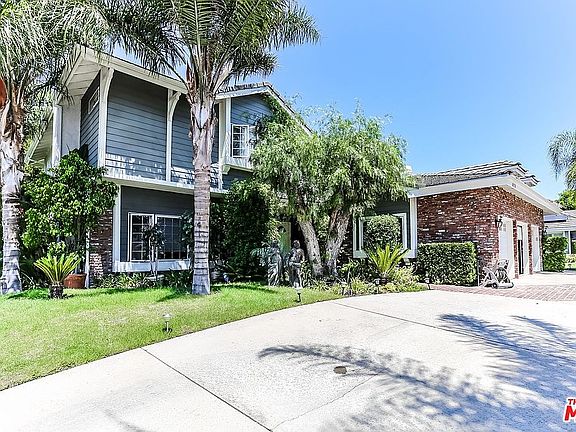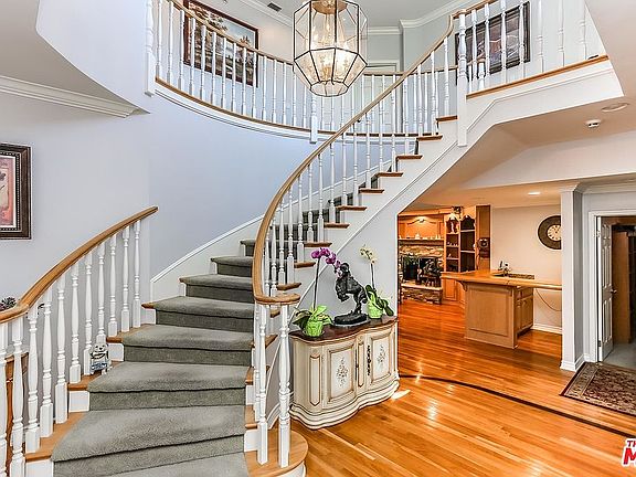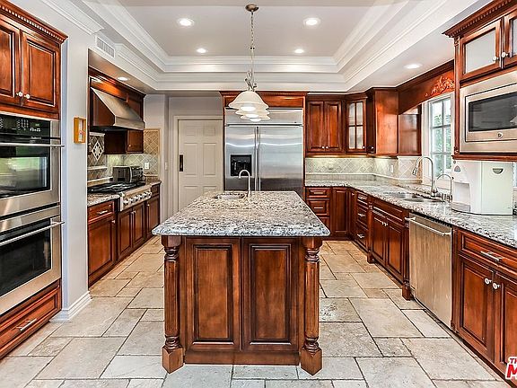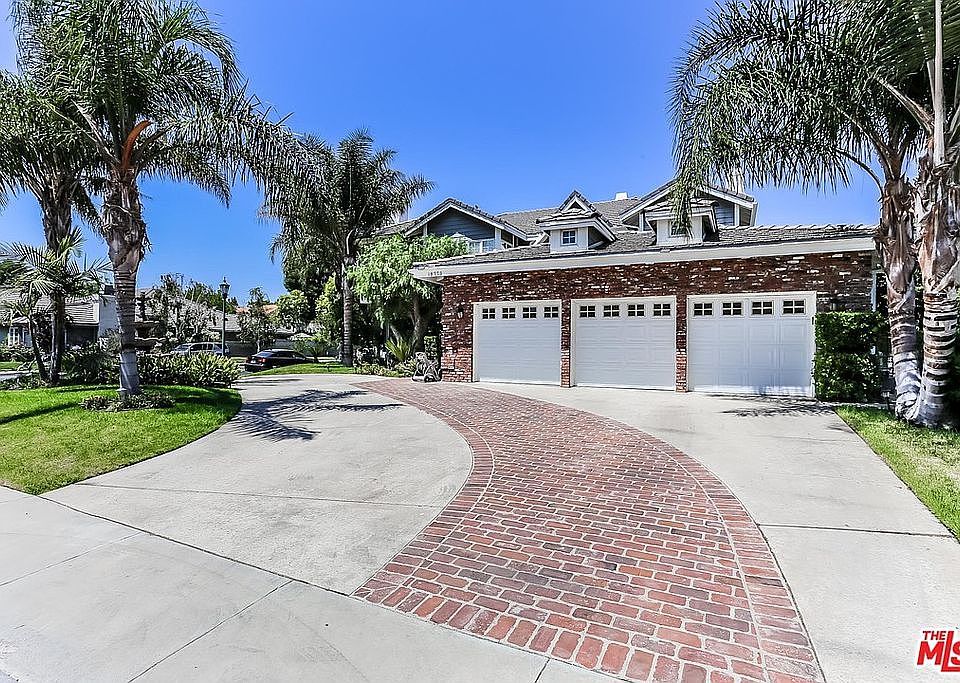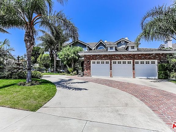 This is a must see! This beautiful home is located in one of the most prestigious 24/7 guard gated communities in Porter Ranch! This gorgeous home sits on a large corner lot that features a half-moon circle driveway. This home also features 5 bedrooms and 5.5 bathrooms, 2 central A/C units, large 3 car garage with built-in cabinets, central vacuum system, and plantation shutters. This home includes a formal dining room, laundry room with storage, first floor bedroom w/ private bathroom, water softening system, large remodeled kitchen, hard wood floors on the first floor, custom cabinetry in living room, 3 elegant fireplaces, bra his and her bathroom in the master bedroom and much more! The large open kitchen features custom large island, marble flooring, custom cabinets, high end rare granite and built-in stainless steel GE Monogram appliances. The yard is an entertainers yard that includes half court basketball court, sparkling remodeled pebble tech pool, spa, and a built-in BBQ grill