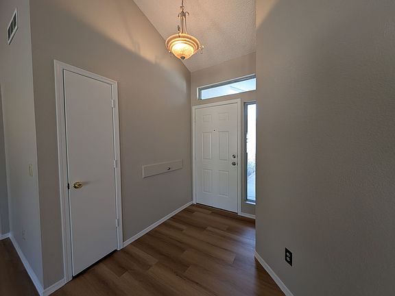 Single Story Home! Corner Lot! 2 Car Garage! Large Desert Landscaped Front Yard! New Luxury Vinyl Plank Flooring! New Paint! Central Air! New Carpet in Master Bedroom! Vaulted Ceiling! Ceiling Fans! Window Blinds! Large Kitchen w/ Breakfast Bar! Pantry! Primary Bedroom Ensuite! Dual Closets in Master Bedroom! Dual Sinks with Separate Vanities in Master! New Home Insulation! Large Back Yard with Covered Patio! Fenced Dog Run! Community Park! Community Playground! Management Fee 3% $200 Lease Fee