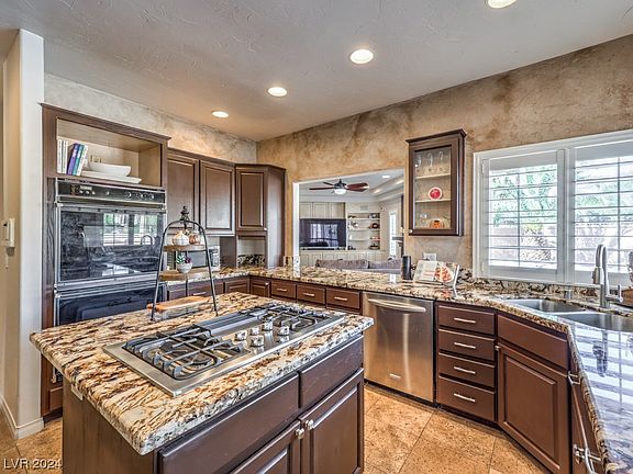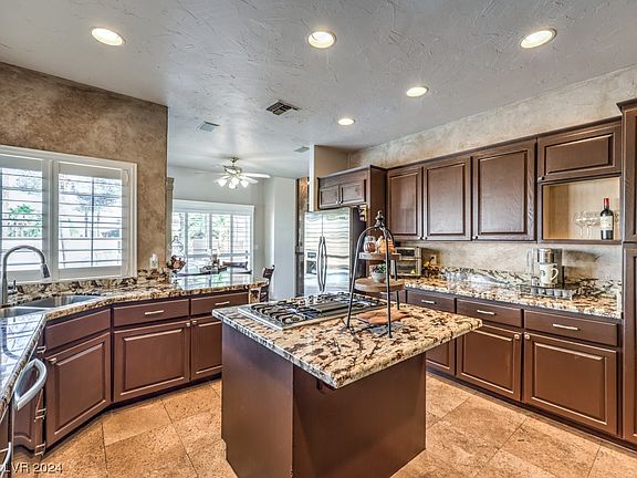 - Description: Breakfast Nook/Eating Area,Custom Cabinets,Granite Countertops,Lighting Recessed,Marble/Stone Flooring,Pantry,Stainless Steel Appliances,Vented Outside