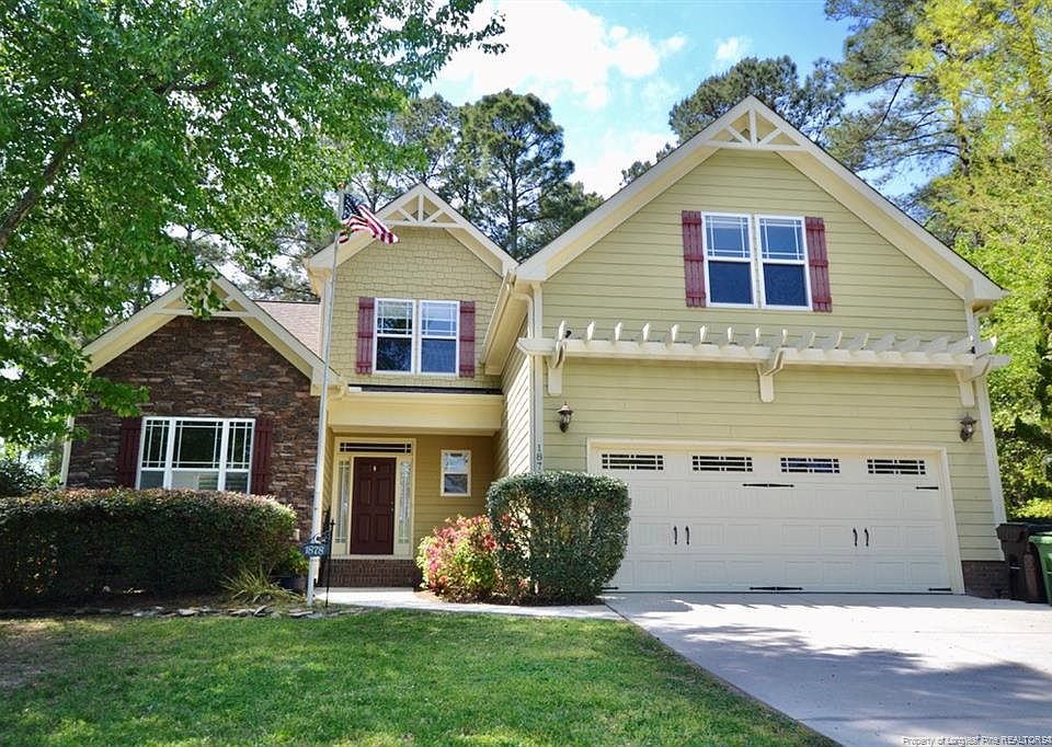 Spacious 3 bedroom/3.5 bath with a Large Bonus Room and office with over 2,6oo square feet home is located in an executive gated golf community. This home features beautiful hardwood floors w/an open floor plan. Grand family room w/a vaulted ceiling, gas log fireplace & built-in book case is open to a large eat-in kitchen w/granite counters, all appliances, pantry & plenty of cabinet space. Formal dining room is just off the kitchen. First floor master bedroom with trey ceiling, huge WIC, jetted tub, separate shower & dual vanity. Upstairs you'll find 2 bedrooms, 1 very large bonus room with built ins, 2 full baths & an office. One bedroom upstairs could be an in-law suite w/it's own full bath & huge WIC. Deck overlooks the fenced backyard & stone fire pit. Neighborhood features swimming pools, playgrounds, club house, tennis courts & more! Move-in ready!