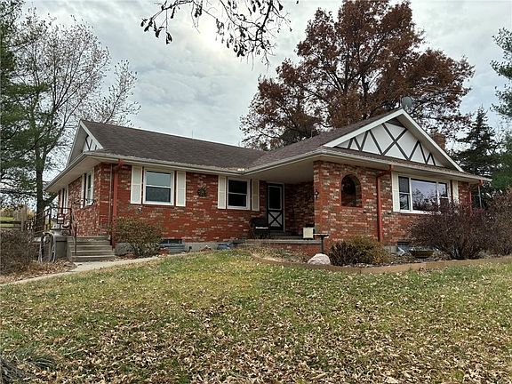 Discover your own piece of paradise just a few minutes northeast of St. Joseph, nestled outside Union Star on a picturesque 9.6-acre mini-farm with pond, perfect for you, your loved ones, and even your four-legged companions. Embraced by gently rolling terrain along a blacktop state highway, this home, mostly enveloped in durable brick exterior, offers a serene retreat. Welcoming gatherings, the open living and dining area, approximately 25'x20', boasts a fireplace and built-in display shelving, ideal for family reunions and cozy evenings. The spacious country kitchen adorned with three walls of cabinetry and ample counter space becomes a hub for meal preparations and enjoyment. The lower level reveals a generous family room with a fireplace, accompanied by a sizable laundry-craft area and abundant storage.