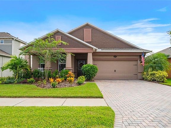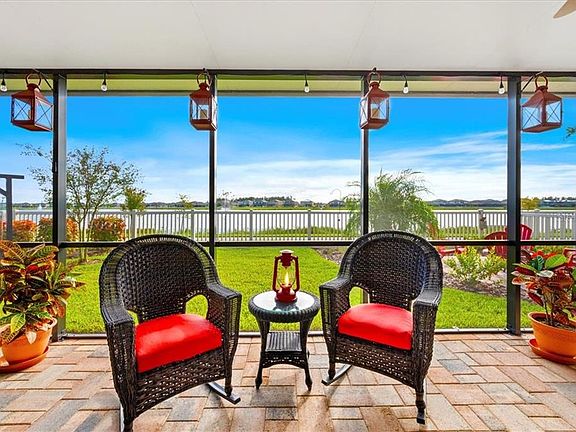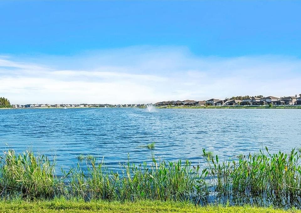 Stunning Lakeside Retreat home nestled on a lush lakefront lot right at the heart of Long Lake Ranch! Enjoy breathtaking sunrise and sunset lake views! Picturesque curb appeal with a perfectly manicured lawn and landcape and custom paver brick driveway and walkway leading up to the craftsman style covered front porch. Enter into lovely foyer that opens to a great-room formal living room and dining room combo. Notice the tall ceilings, upraded lighting and elegant baseboards. A gorgeous kitchen is at the center featuring high quality stainless steel appliances including double oven, upgraded 42 inch white cabinetry, granite counter tops, kitchen desk nook with additional cabinets, large island and breakfast bar and a dining nook. A large living room with plenty of space for entertaining captures beautiful views of lake and sunshine. Sliding glass doors open to a wonderful covered and screen enclosed lanai and an amazing outdoor living experience complete with a custom paver campfire zone and barbeque zone as well as a garden swing and an fantastic fully fenced backyard and all with amazing views of the lake. The owners retreat is a tranquil oasis with views of the lake and includes a full en suite and large walk-in closets. Nicely sized spare bedrooms. Laundry roon with cabinetry. Incredible upgrades! Garage workshop, double pane windows, hybrid water heater, brilliant lighting, porcelain and high quality wood plank style vinyl flooring, jetted garden bath, granite in the baths, gutters, landscape curbing, ring doorbell, hurricane shutter system and much more. Long Lake Ranch is a wonderful community it Lutz, Florida and offers exciting amenities such as: Community Lake and Dock, nature trails for walking or jogging, clubhouse swimming pool and splash pad, park with playground, tennis and basketball courts. Exellent Schools!